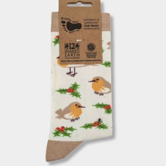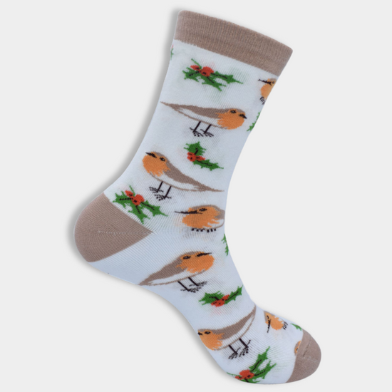 2 pairs of Bamboo Socks Christmas Robins Shoe Size UK 7-11