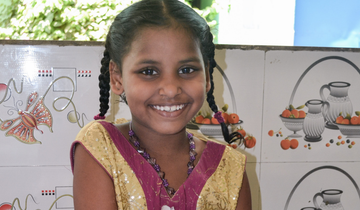This gift provides a child, like Adilakshmi, pictured here, with a main meal every day for a whole month. Mealtimes usually start with grace, they are happy, sociable occasions that the children really enjoy.