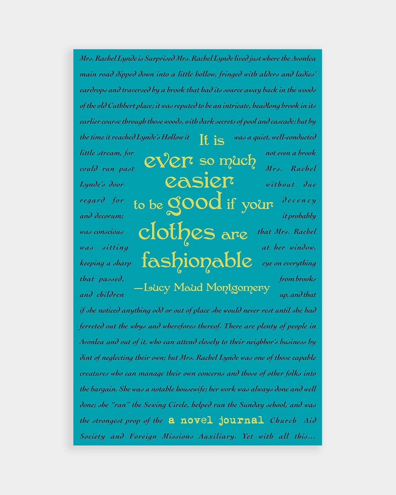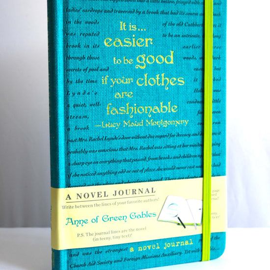 This delightful,192-page journal has the text of Anne of Green Gables in teeny, tiny writing forming the lines on the page. You simply write between the lines! Includes elastic closure, ribbon marker and a pocket in the back for tickets and receipts etc. Great for journalling, writing lists, study notes and book club reviews. Hardback with gold titles and wipe-clean, leather-look cover. Quirky and fun! A totally novel gift!