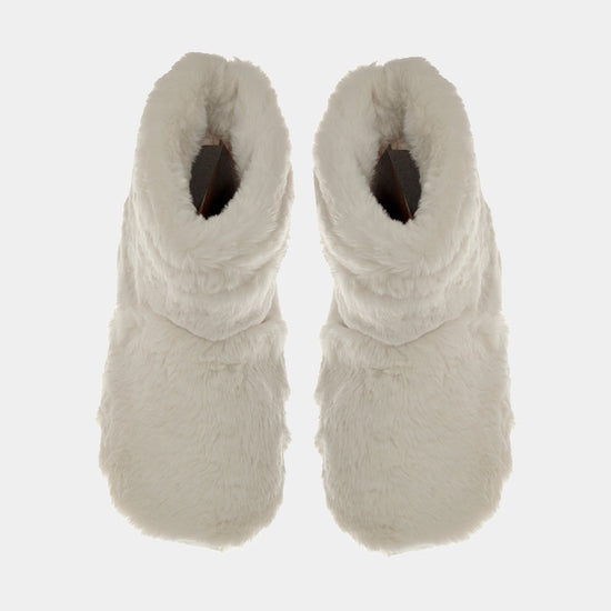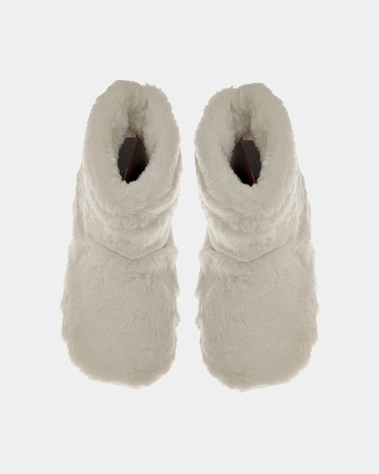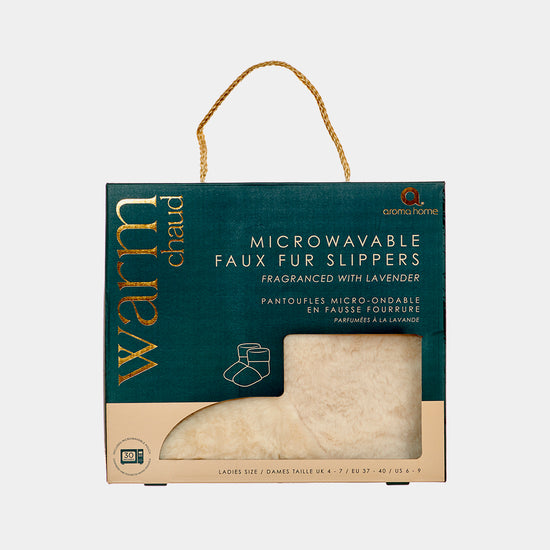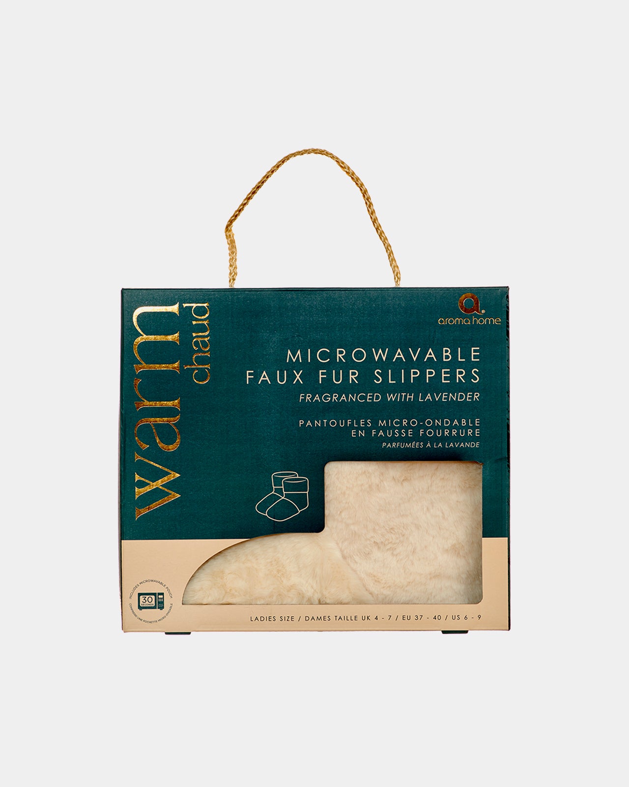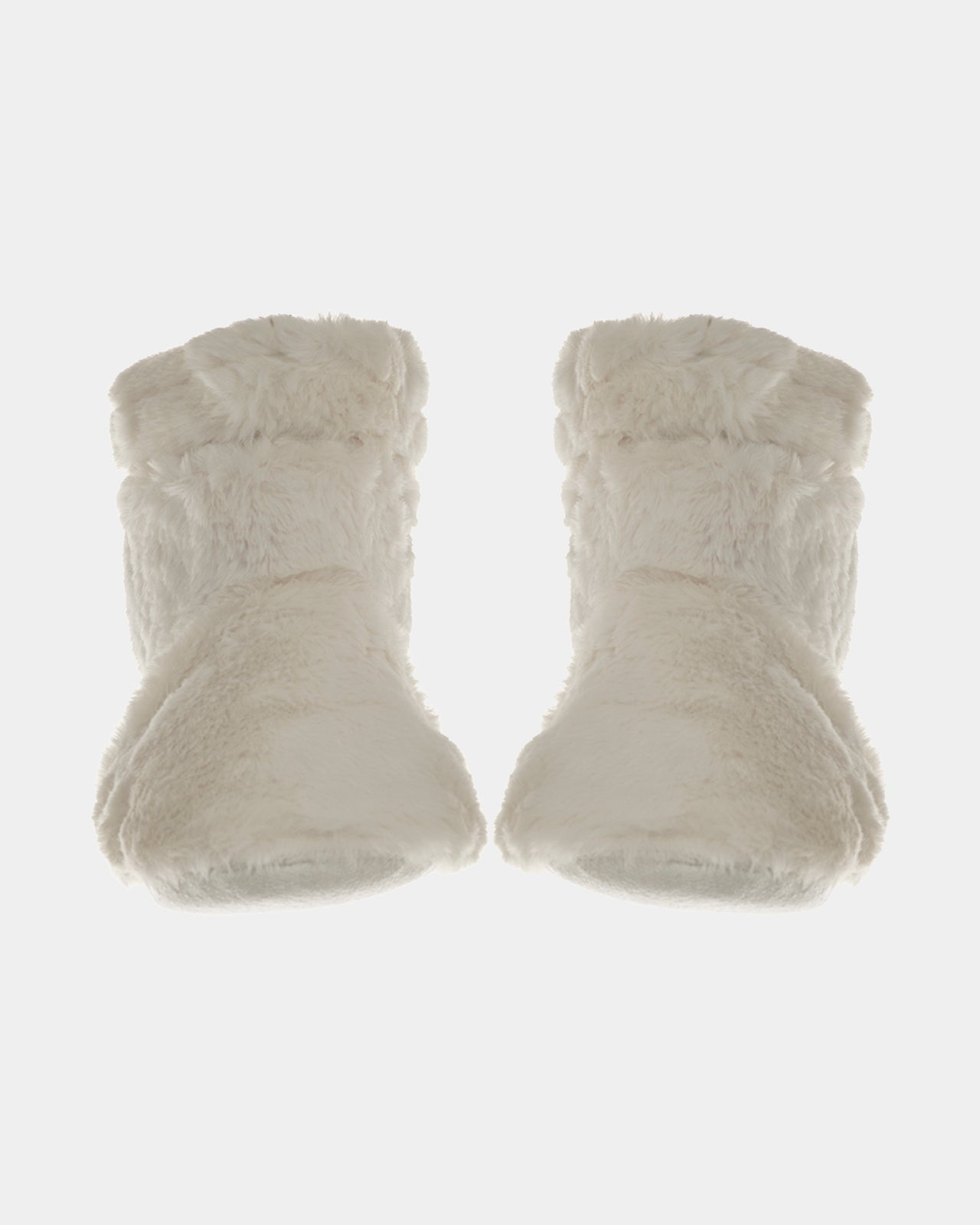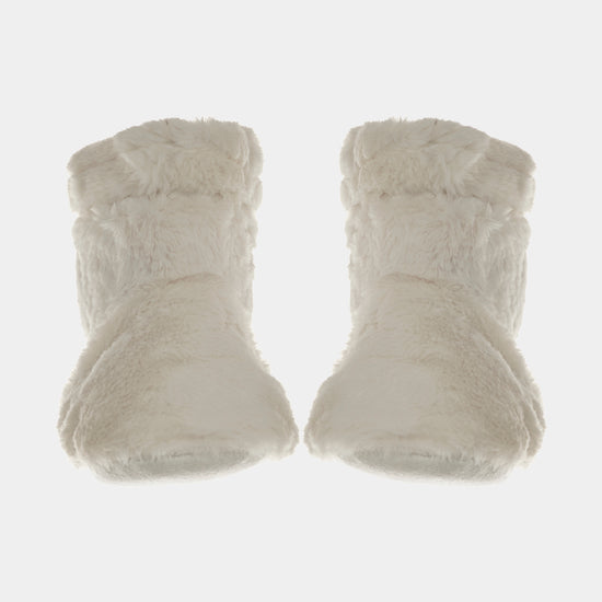 Slip into this comfy pair of cream fauxfur slipper boots featuring a removable microwavable lavender pouch. Designed to provide ultimate warmth and a soothing aromatic experience. Designed for indoor wear only. Fits most feet up to women’s UK size 7.