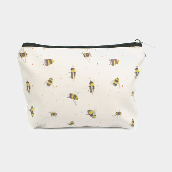 Zipped wash/make up bag featuring a lovely bee design, perfect for Summer travel. Approximate Size: 21 x 13.5cm