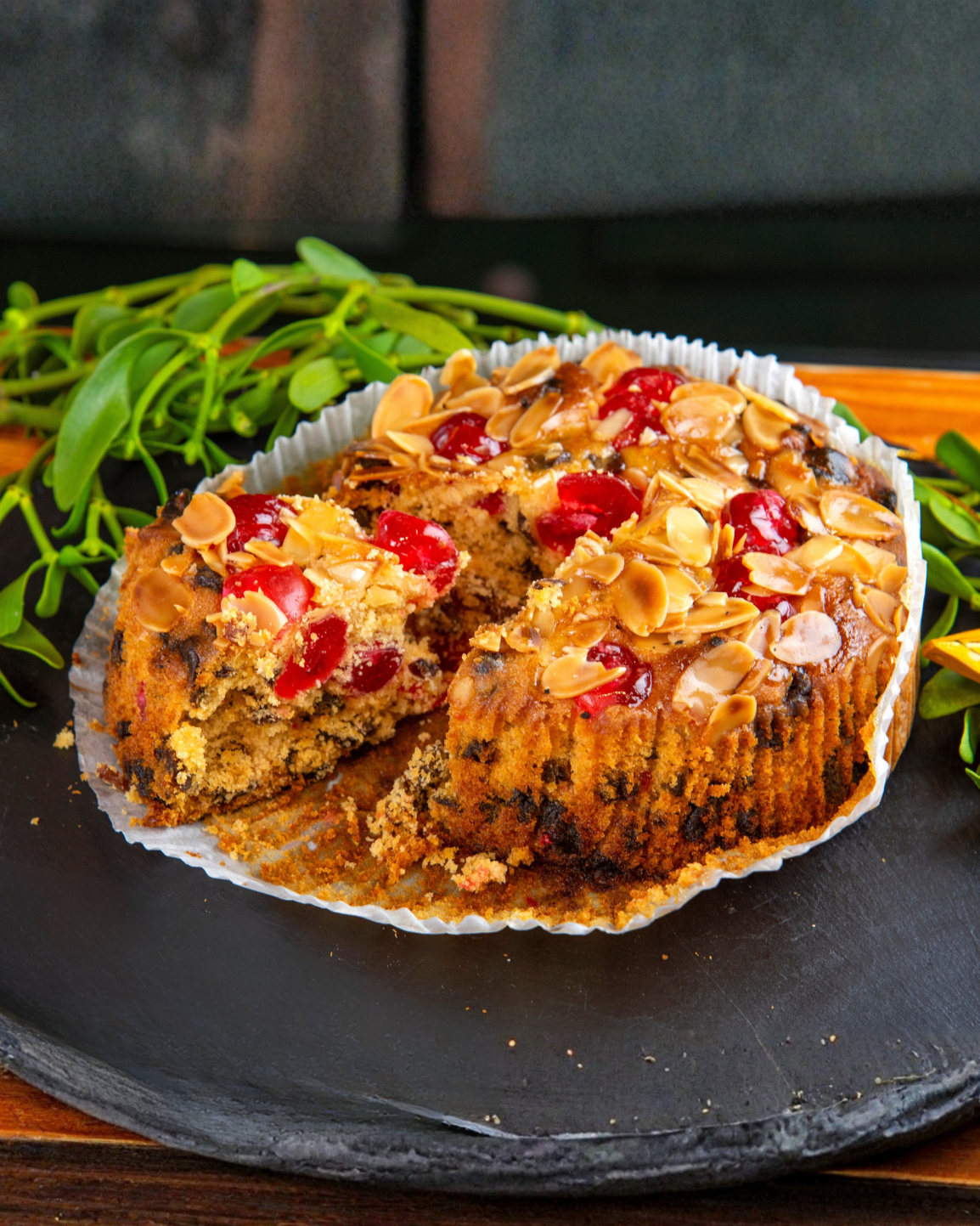 Rich and delicious with cherries and almonds this traditional cake will sure to add a luxurious treat to your Christmas celebrations. Made by Bramble Foods. 450g.