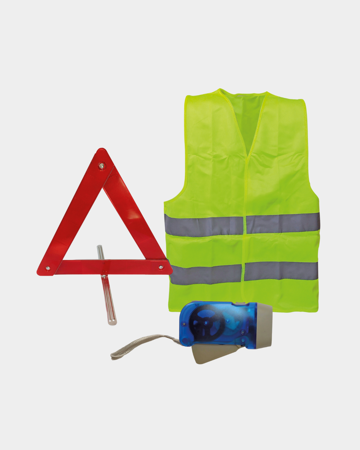 All drivers need an emergency kit for the car. This gift tin contains a hazard warning triangle, wind up torch and high vis vest, fits up to XXL.
