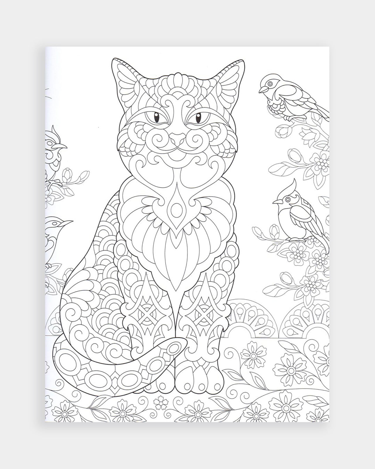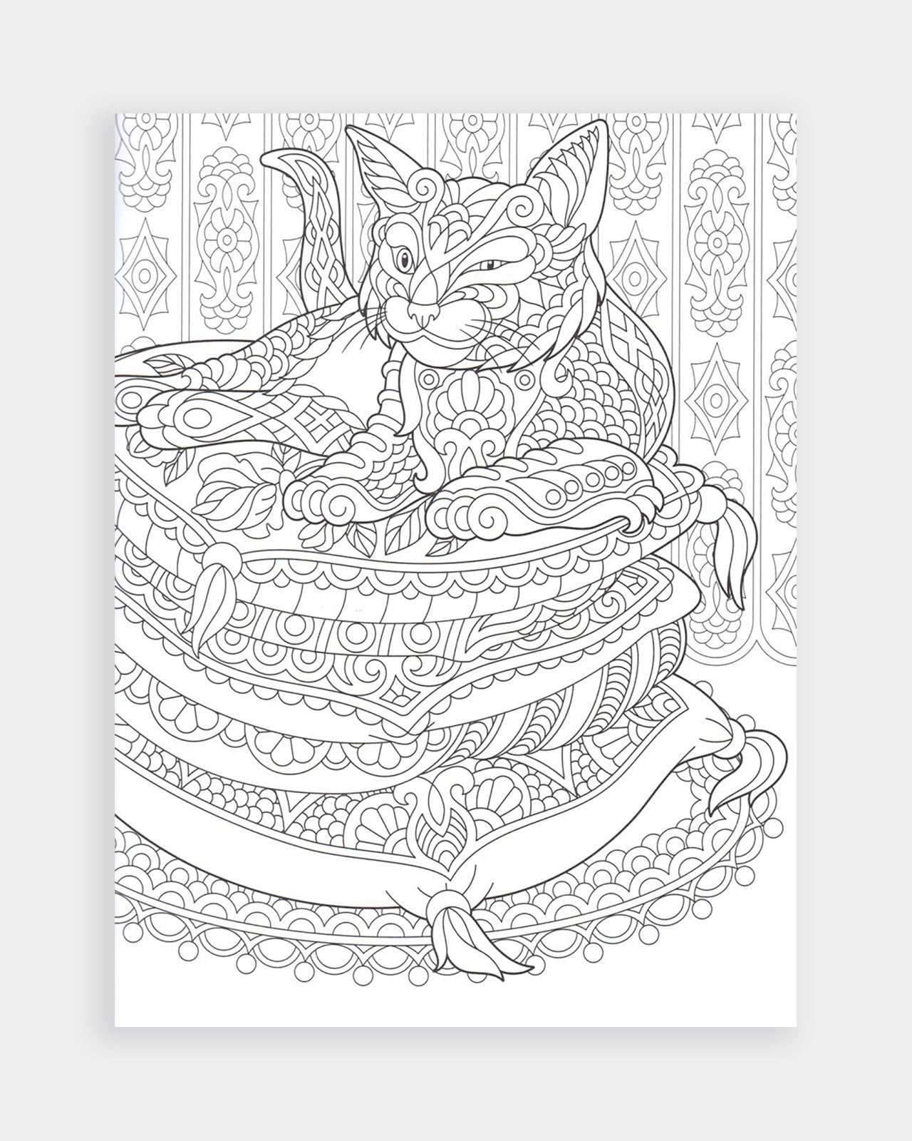 Beautiful black and white illustrations of all kinds of cats and kittens in different artwork styles from cartoony to realistic. The back of every illustration has a detailed feline pattern to colour. A wonderful book to help you release your creativity and gently unwind.