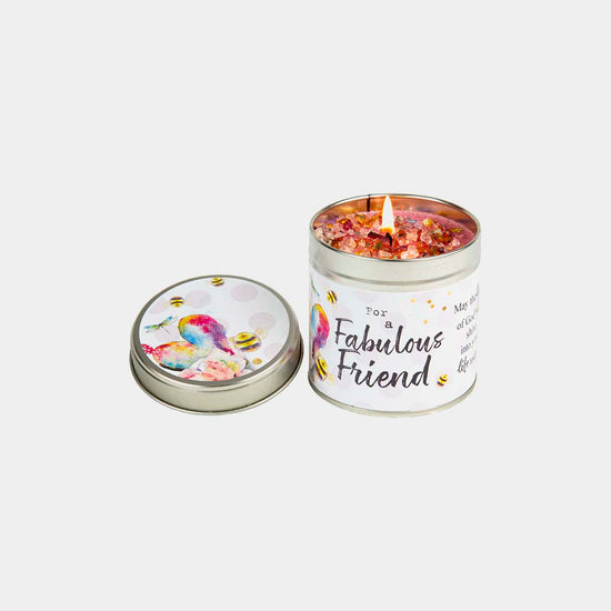 Let a special friend know just how much they mean to you with this beautifully designed Fabulous Friend candle tin. Bright, joyful artwork wraps around the tin, creating a warm, uplifting feel from the very first glance.