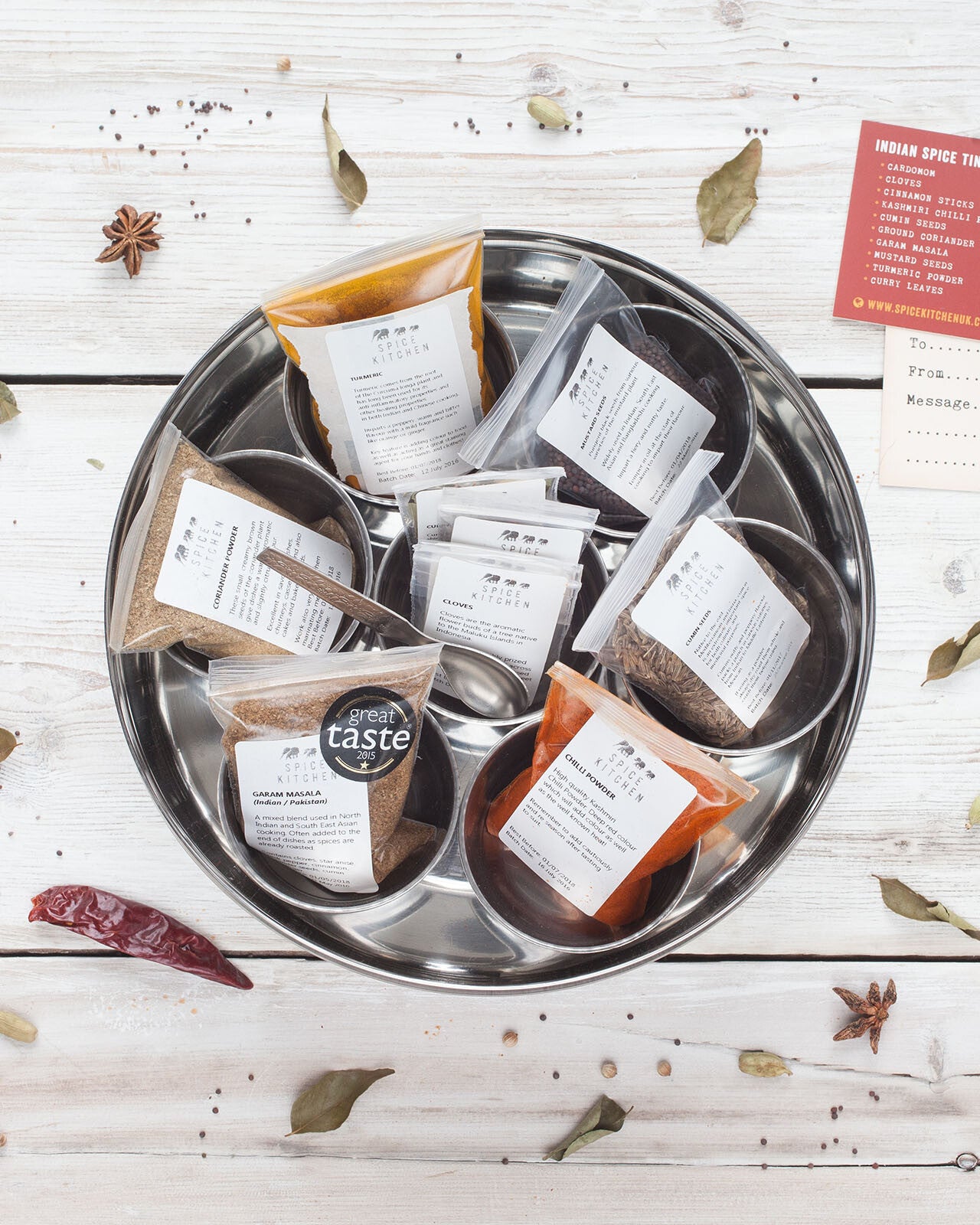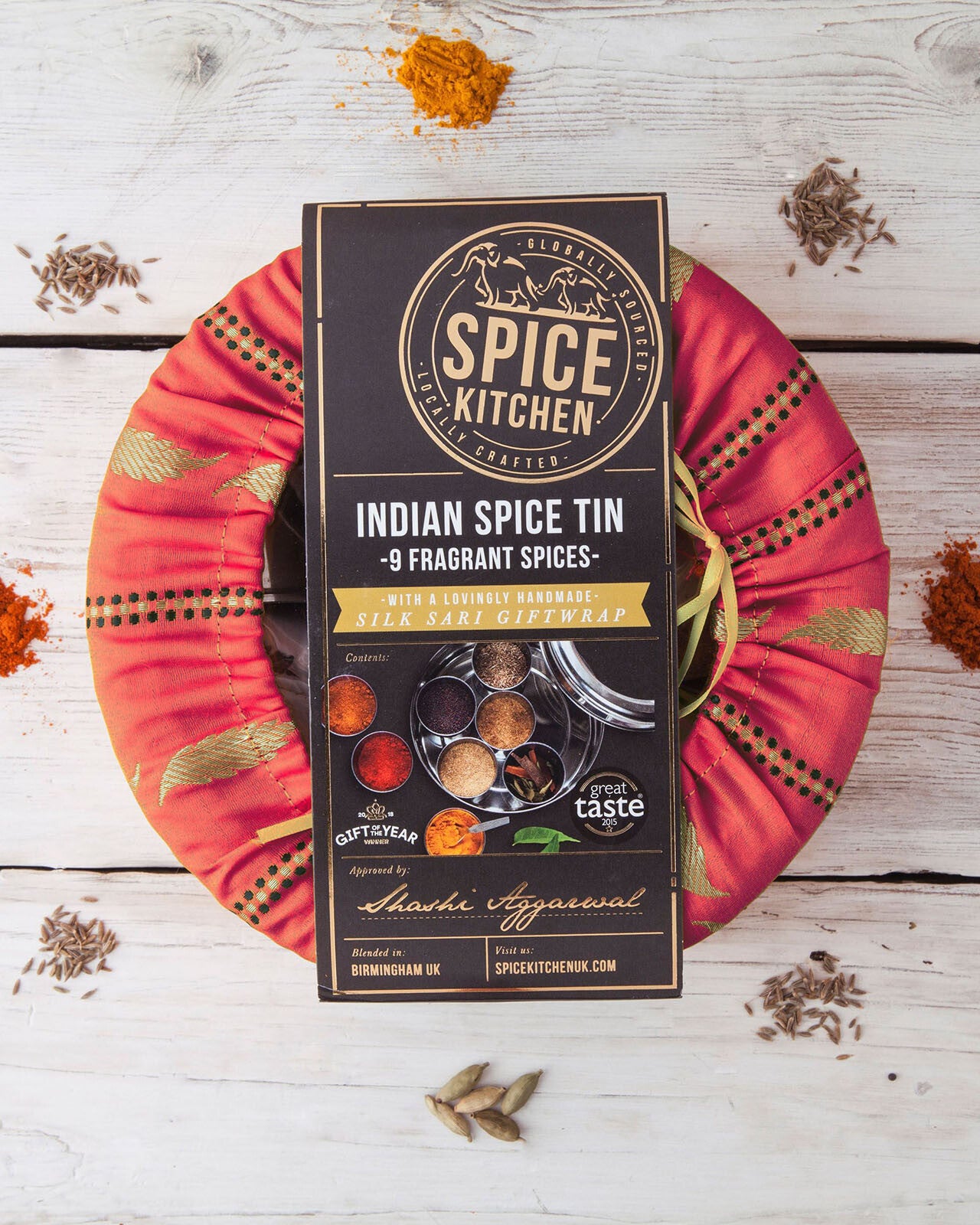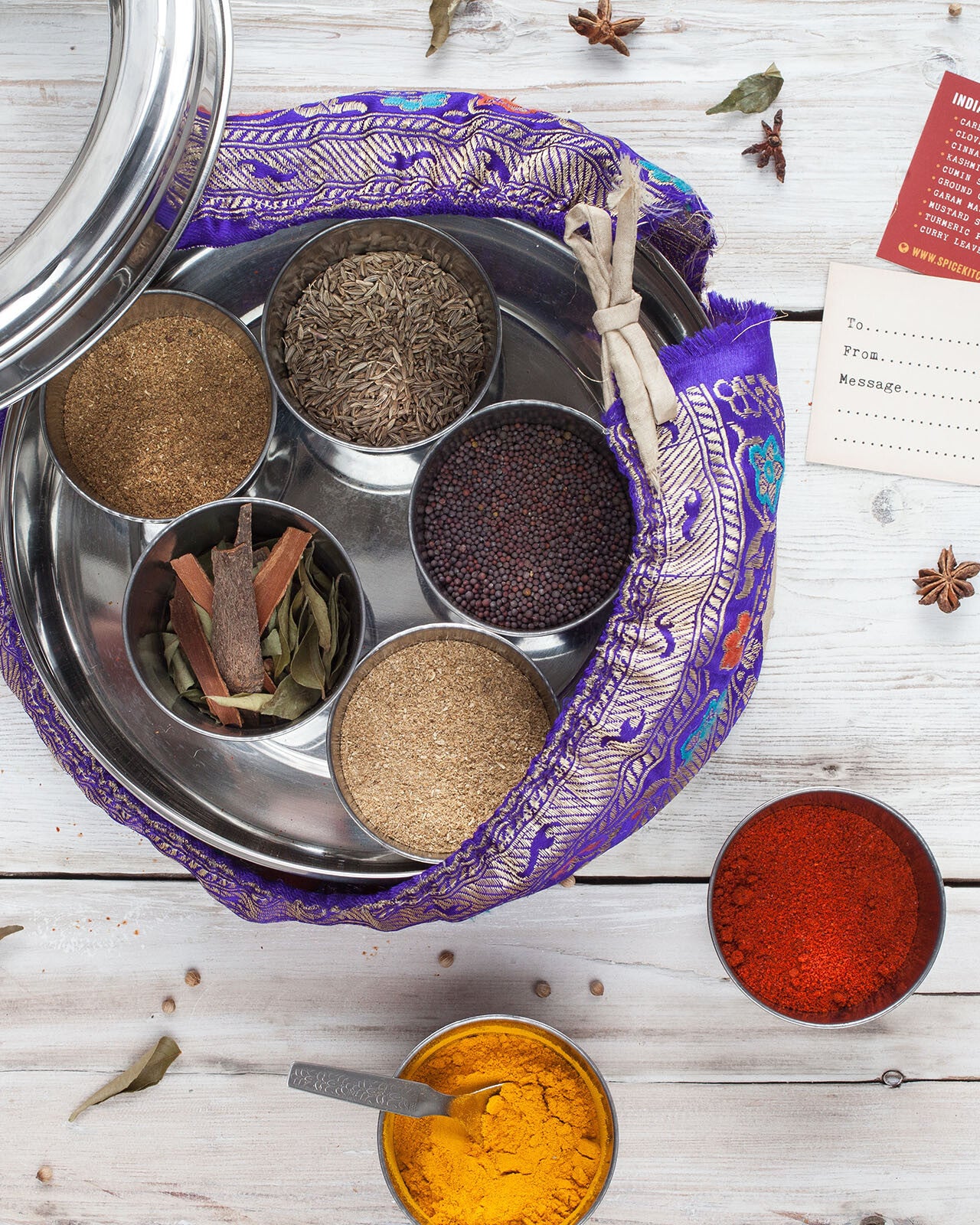 - Durable stainless steel Indian spice tin for use and for storage and display. The ribbed lid helps to retain the freshness of the spices, and the tin is also dishwasher safe