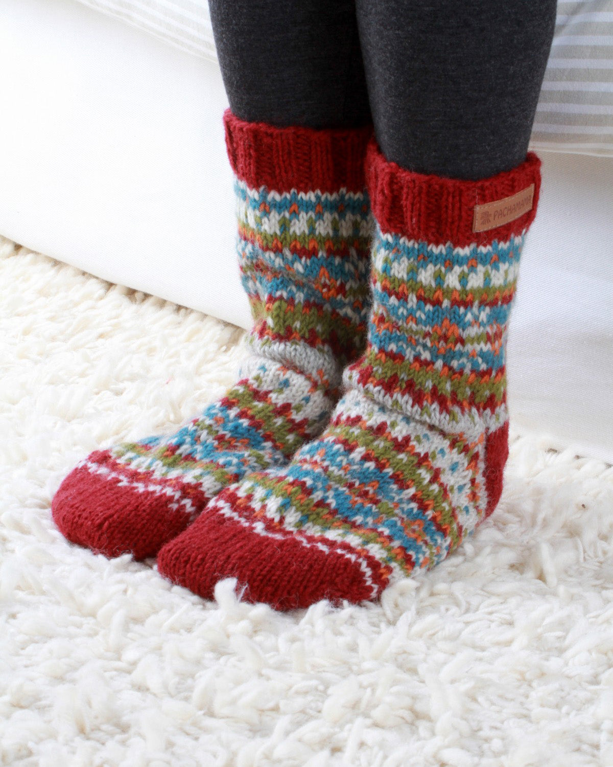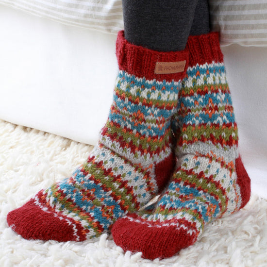 Unlined chucky knit cosy sofa socks. Please note they are not slippers and are best suited for light wear around the home.