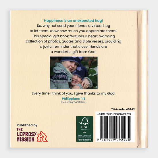 Happiness is an unexpected hug! So, why not send your friends a virtual hug to let them know how much you appreciate them? This special gift book features a heart-warming collection of photos, quotes and Bible verses, providing a gentle reminder that close friends are a wonderful gift from God.