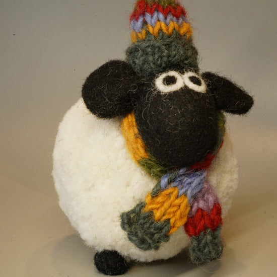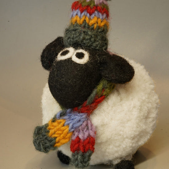 Margaret is nice and cosy with her hat and scarf. This charming decoration is handmade from 100% wool felt. Approx height 9cm.