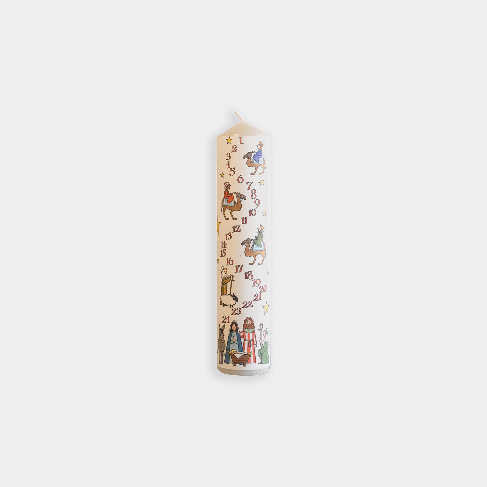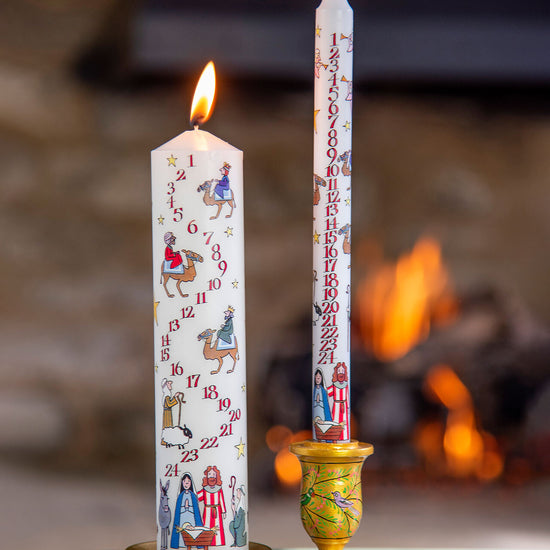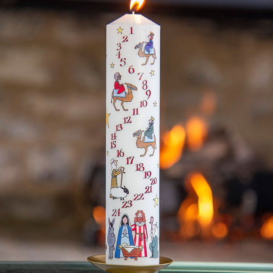 Features Nativity design by artist Alison Gardiner. Holder not included. We have sourced the perfect Pillar Candle Holder in matt black metal to fit 50 hours burn time. Size 25 x 5cm.