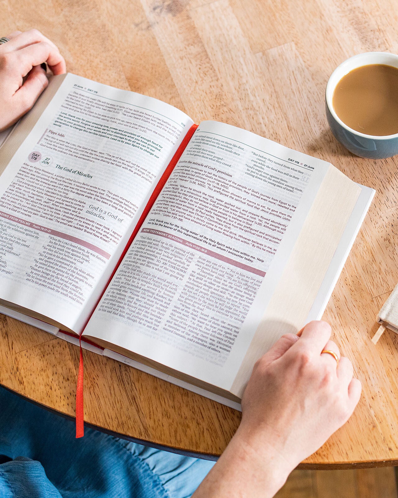 A smart, hard-wearing Bible offering a daily portion from the New Testament, Old Testament and Psalms or Proverbs plus insightful commentary by Nicky and Pippa Gumbel who developed the Alpha Course. A wonderful resource for anyone seeking to read the whole Bible in a year. 1,984-page, NIV hardback with ribbon marker . 'My favourite way to start the day.' Bear Grylls