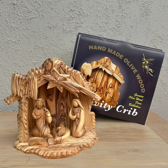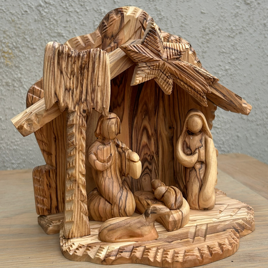 Olive Wood Nativity Stable Scene – Handcrafted in Bethlehem