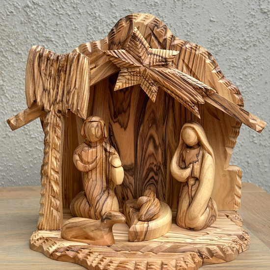 Olive Wood Nativity Stable Scene