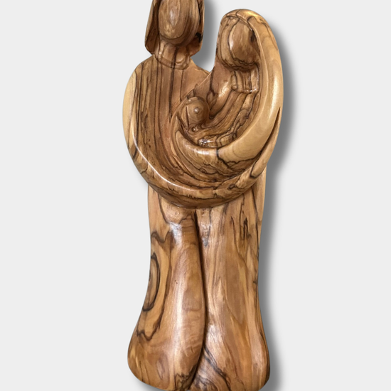 Each figurine is crafted in the Holy Land by skilled artisans using sustainably sourced olive wood—no trees are ever cut down. Only carefully pruned branches are used, honoring the ancient trees and the land they come from.
