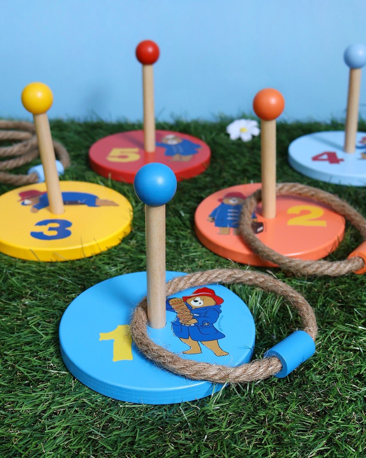 Classic ring toss with a Paddington twist! Made from sturdy wood and featuring everyone's favourite bear, this set comes with five rope rings and is perfect for garden fun or parties. Great for building coordination while having a laugh.