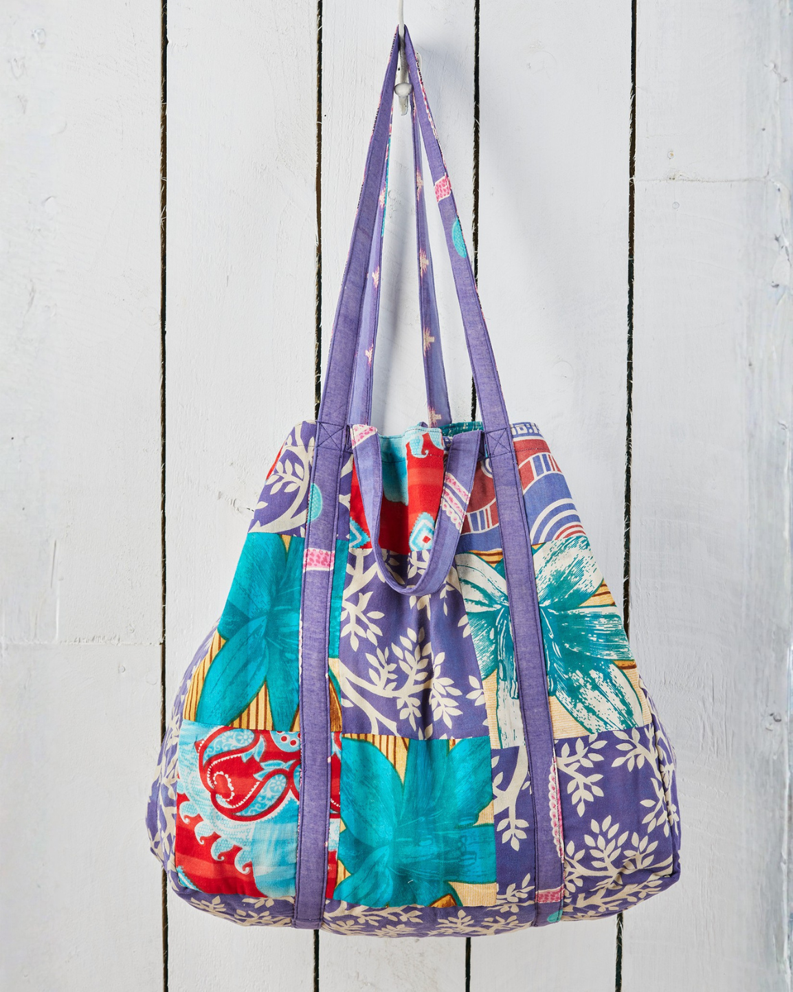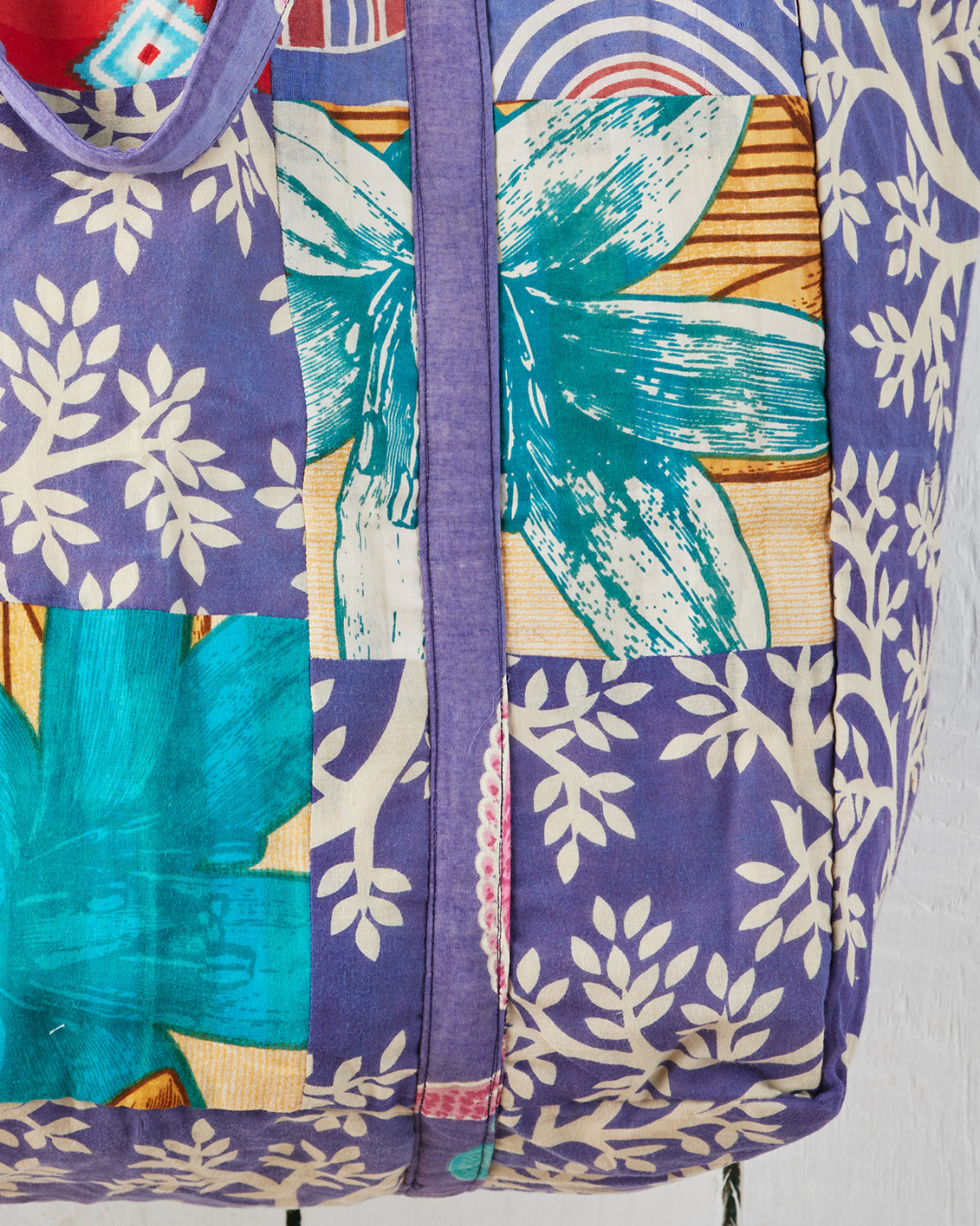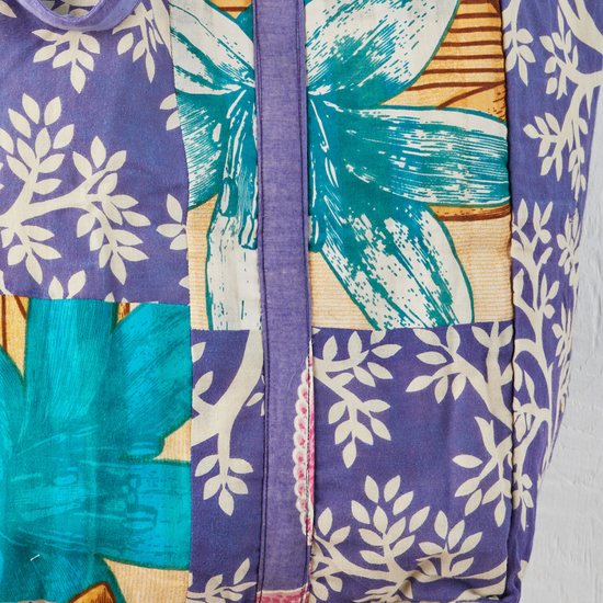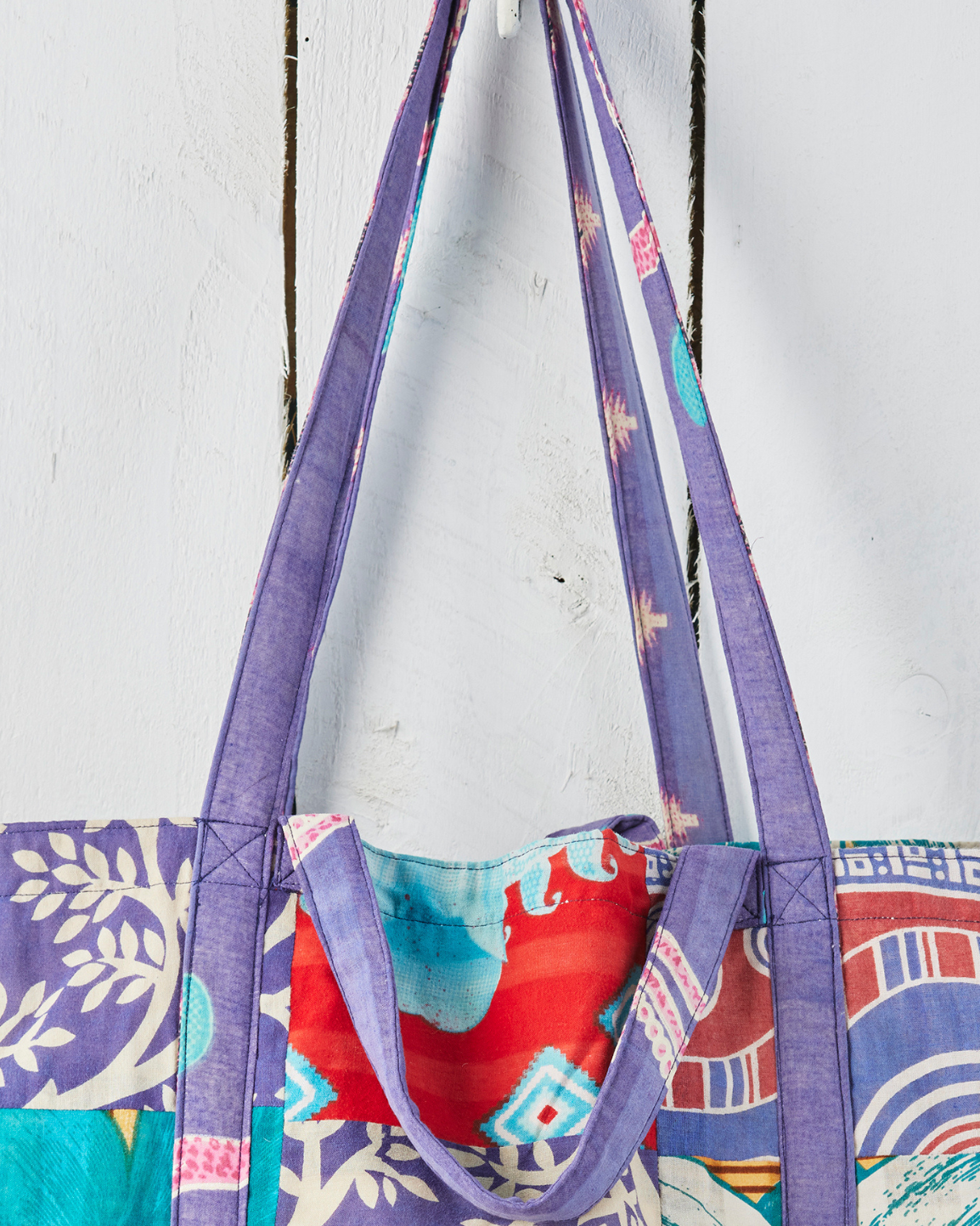 Alluring patchwork sari fabric creates a lightweight yet strong shopping bag that folds neatly into a pocket, glovebox, or day bag. Choose between long shoulder straps or short handles. Beautifully handmade by skilled female artisans with a WFTO-recognised supplier in Bangladesh.
