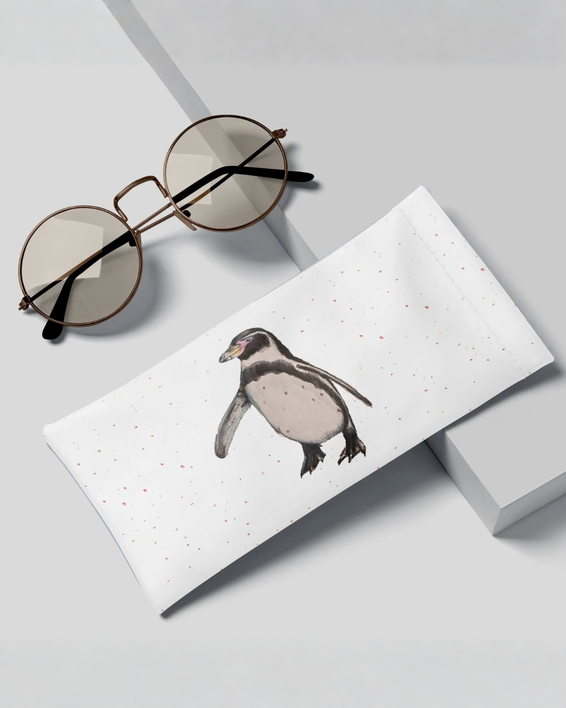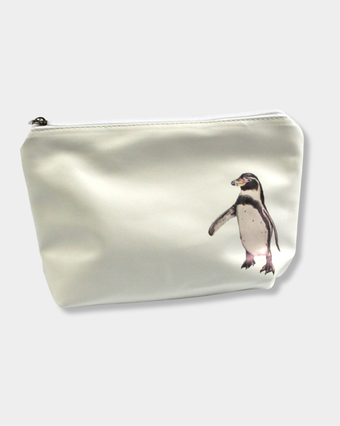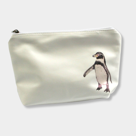 Perfect for travel, this cute penguin set is great value and consists of a good size zipped purse, a snap closure soft-covered glasses sleeve and wipe-clean lining small wash bag.