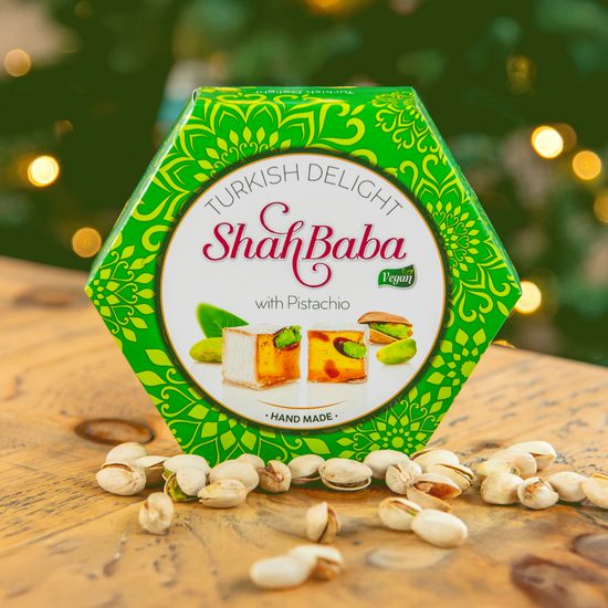 An indulgent Turkish traditional treat with a nutty twist. Soft, sweet and chewy Turkish Delight paired with pistachios. 250g