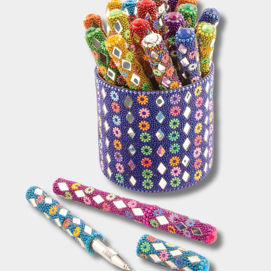 Fair trade and hand crafted in India a glitzy and handy pot of 20 sparkly pens.