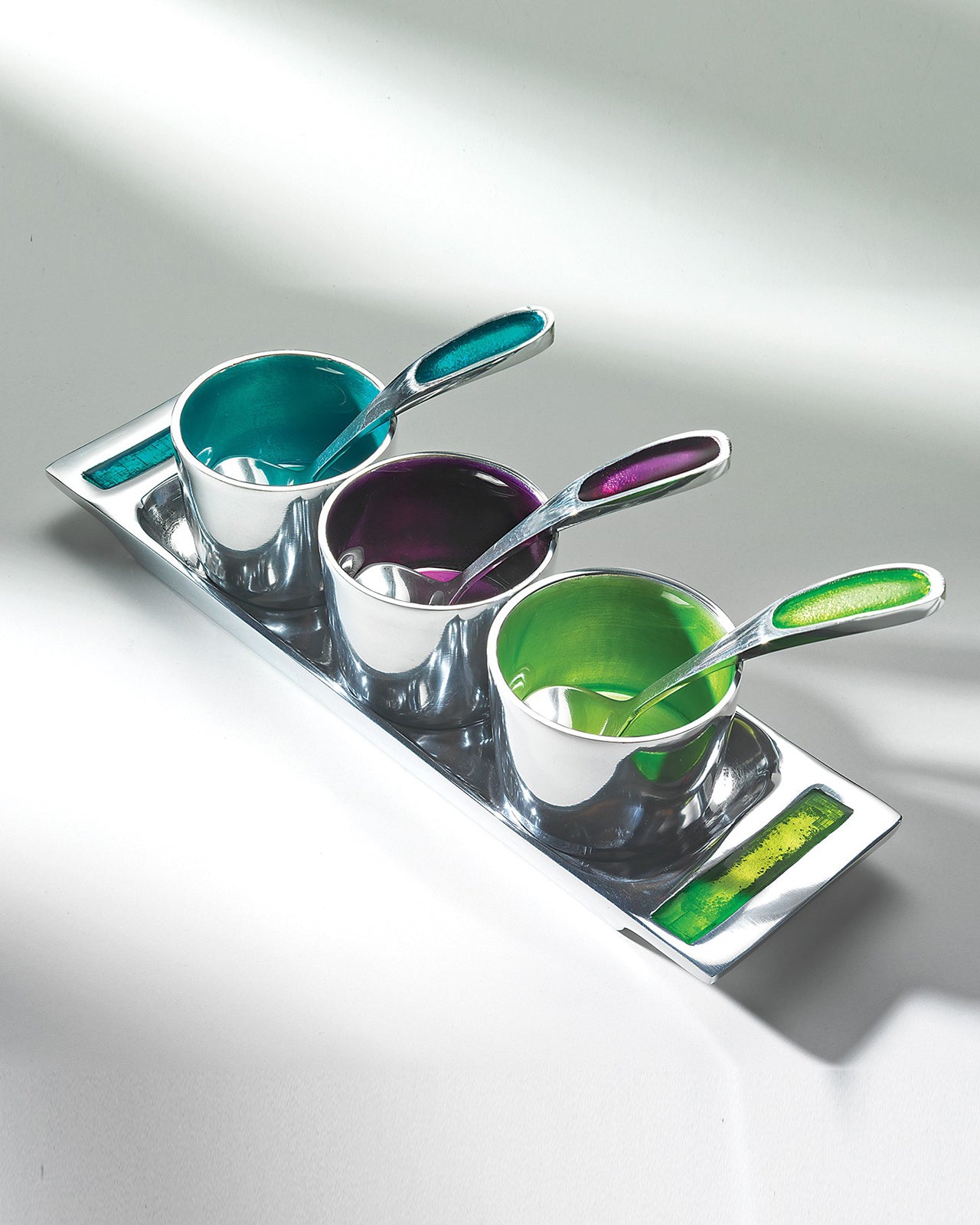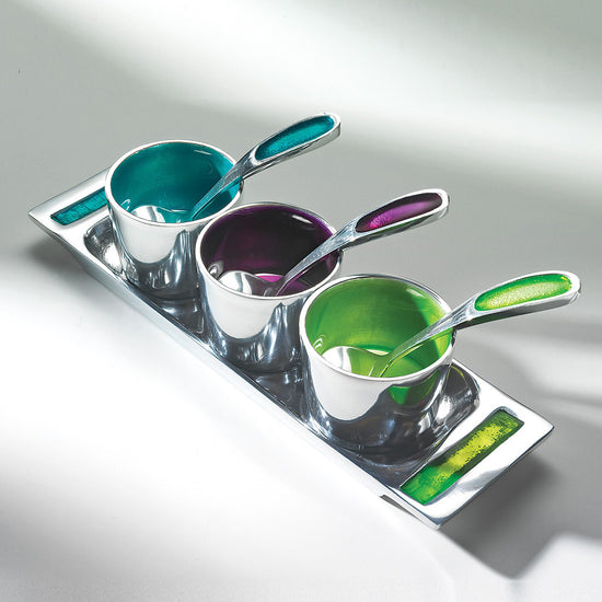 This beautiful set is decorated with coloured enamel for a stunning finish.
