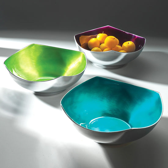 Recycled aluminium 4 point salad bowl in beautiful shades of lime, purple and teal. Size: 25 x 25 x 10cm