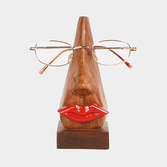 A fun glasses holder for the bedside or your desk. Made from shesham Indian hardwood with hand-painted red lips.