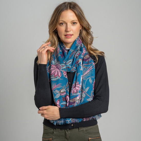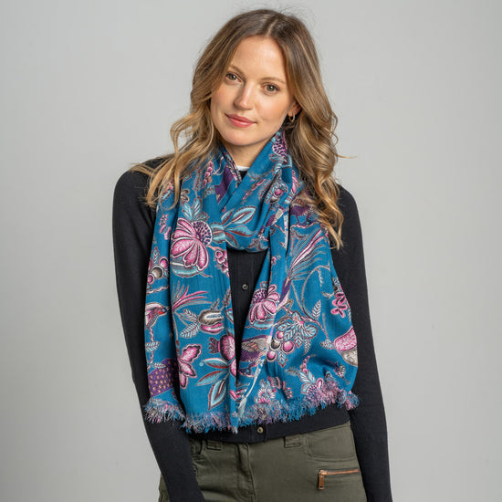 Teal Floral Printed Scarf
