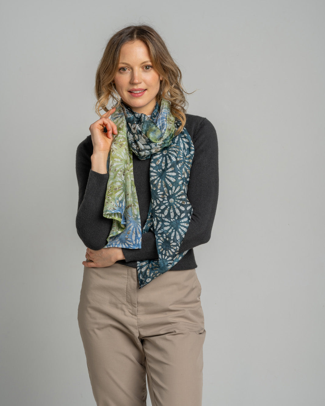 Gorgeously soft and flowing, this silk scarf is generously proportioned and simply fabulous. Made in Vietnam, Earth Squared. Size: 70 x 180cm.