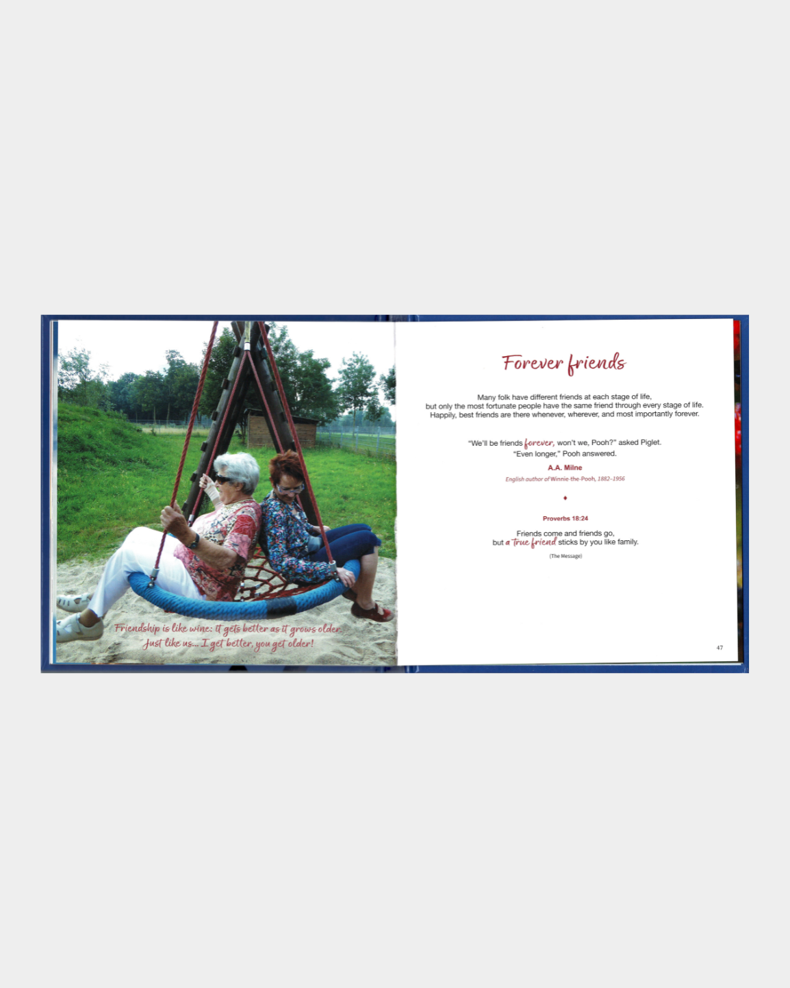 The ideal gift to remind a good friend just how much they are valued and appreciated. Philippians 1:3 - Every time I think of you, I give thanks to my God. (New Living Translation) TLM 54 page hardback gift book.