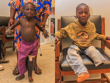Happily, Remi was fitted with a child-size prosthetic leg, so now he can get around and go to school like other children his age. And, as he grows, Chanchaga Workshop will create new prosthetic legs for him at no cost to his parents.