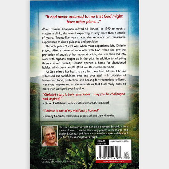 Chrissie Chapman opened a maternity clinic in Burundi. Later, when civil war broke out, she bravely started a centre for abandoned babies and traumatised children. Chrissie adopted three children herself, and raised more than fifty others. Time and again she witnessed God’s protection and provision. One night, she and the mission director were praying amid the fighting. When they looked up they perceived dozens of angels surrounding the clinic. Lion paperback, 192 pages.