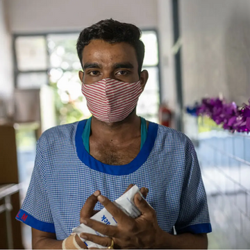 See how Charanjeet is cradling his hand. As a farmer his hands are everything to him, but one winter day, he warmed his hands in front of the fire and burnt himself badly. He hadn’t felt anything. By the time he was diagnosed in The Leprosy Mission hospital in India, his hand was in a terrible condition. Charanjeet was worried about whether he could continue working. Even in the middle of the Covid pandemic, he was offered surgery on his hand. When the plaster was removed, he was overjoyed. His fingers were straight, and he was able to make a fist. Thanks to you, he can now work again.