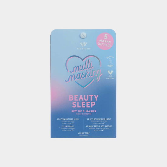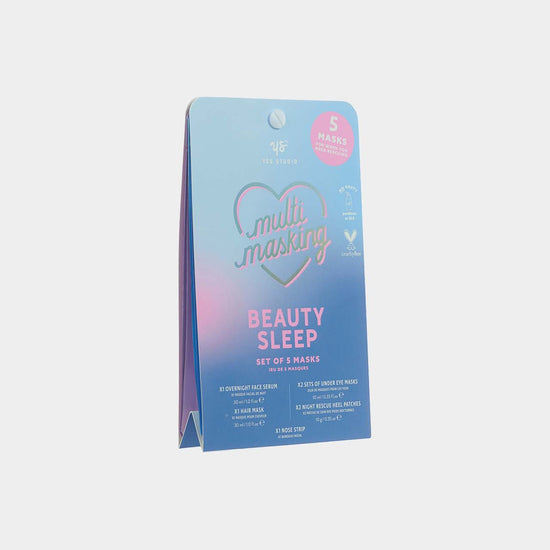 Five treatment masks to promote relaxation: overnight face serum; hair mask; 2 x under eyes; nose strip; and 2 x heel patches. Cruelty free, paraben free and SLS free.